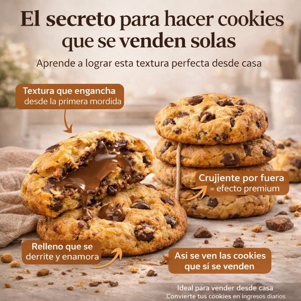 💰 Es una guía práctica paso a paso que te enseña a calcular precios, organizar tu producción, encontrar clientes y vender cookies todos los días desde casa.